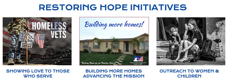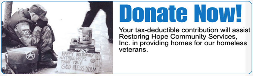First and foremost, by giving to Restoring Hope Community Services, Inc., a nonprofit organization; you will be able to support our direct outreach to Veterans and homeless people in our communities. Together we can remedy the problem of homelessness and restore hope to those who are challenged with life's circumstances. All donations are tax deductible.